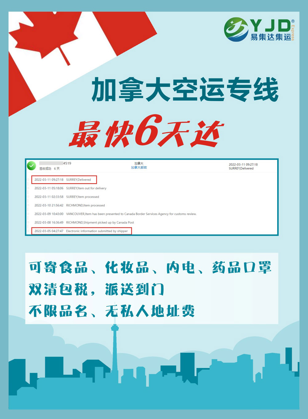 加拿大空运,最快6天达,有图有真相