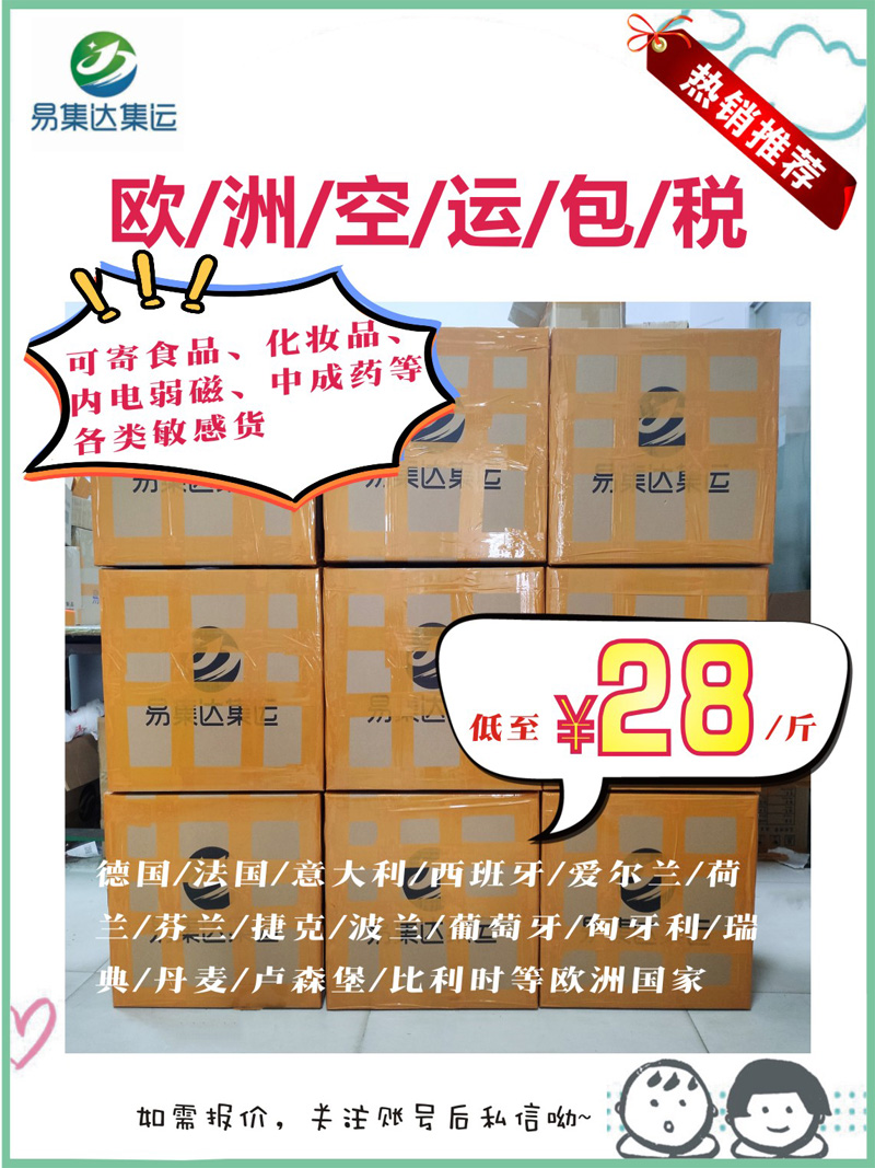空运法国、德国、意大利、西班牙续重低至28元/斤